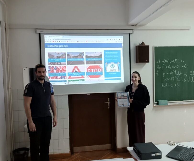 U ponedjeljak, 16. veljače 2026. godine u našoj je školi održana dodijeljena pohvalnica učenici Lauri Baotić, 4a za sudjelovanje u Prometnoj Učilici – 8. Državnom natjecanju u poznavanju prometnih pravila.