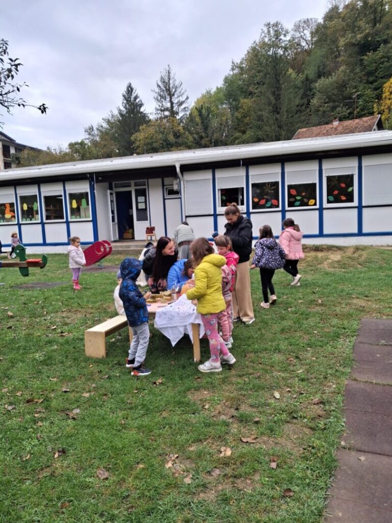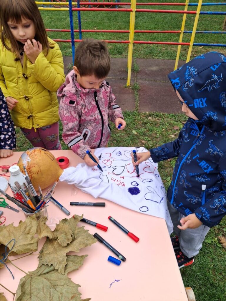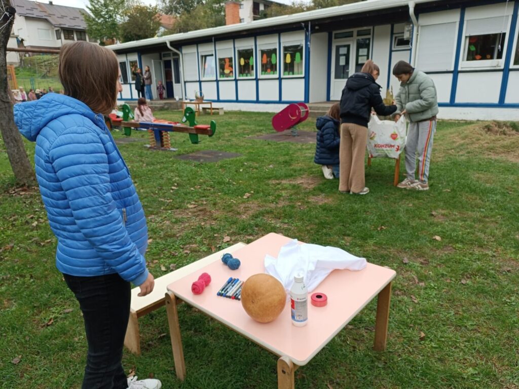 Zajedničkim radom djeca su od osušene tikve i ukrašene košuljice izradila veselog Jesenka – simbol jeseni, zajedništva i topline. Svaki mali detalj bio je rezultat suradnje i međusobne pomoći.