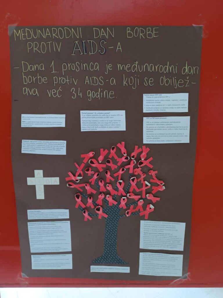 Učenici su, zajedno s nastavnicom biologije, izradili informativni plakat koji prikazuje ključne činjenice o HIV-u i AIDS-u, načine zaštite i važnost empatije. Plakat je izložen u školskom hodniku kao podsjetnik da znanje spašava živote.