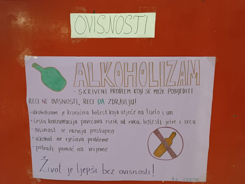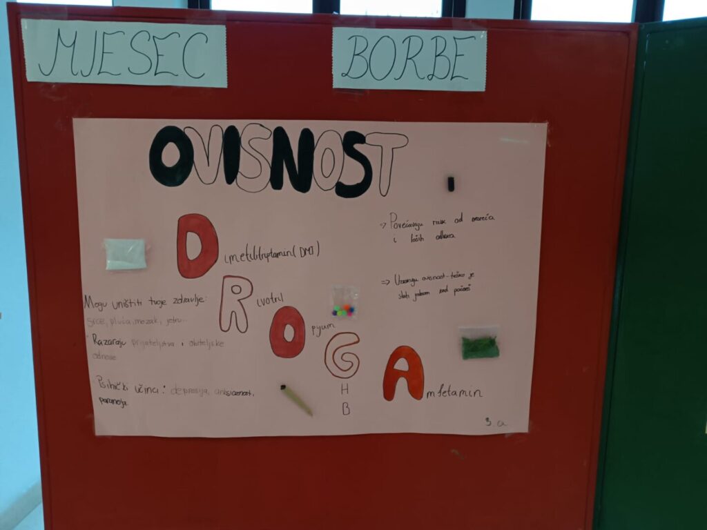 U sklopu obilježavanja Mjeseca borbe protiv ovisnosti, u našoj školi provedene su brojne edukativne i kreativne aktivnosti s ciljem podizanja svijesti o štetnosti različitih oblika ovisnosti te poticanja zdravih životnih izbora.