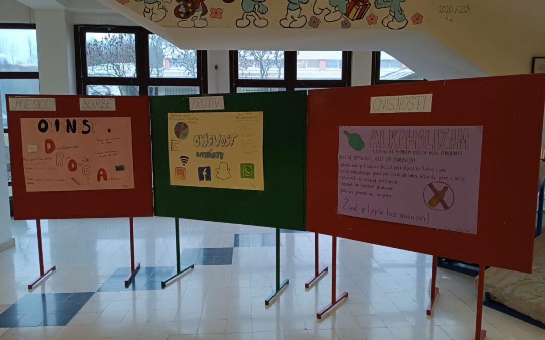 U sklopu obilježavanja Mjeseca borbe protiv ovisnosti, u našoj školi provedene su brojne edukativne i kreativne aktivnosti s ciljem podizanja svijesti o štetnosti različitih oblika ovisnosti te poticanja zdravih životnih izbora.
