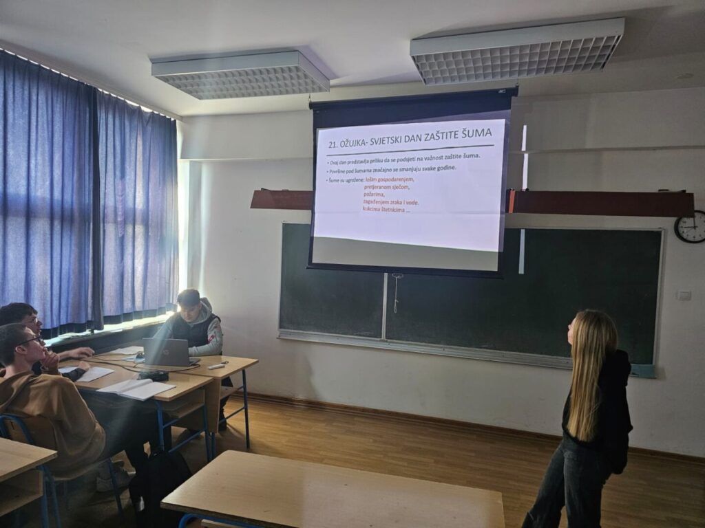 Osim praktičnog dijela, učenici su održali i prezentaciju u razredu, tijekom koje su istaknuli važnost zaštite prirode, očuvanja šuma i racionalnog korištenja vode. Kroz izlaganja su upozorili na izazove poput klimatskih promjena, onečišćenja i neodrživog iskorištavanja prirodnih resursa.