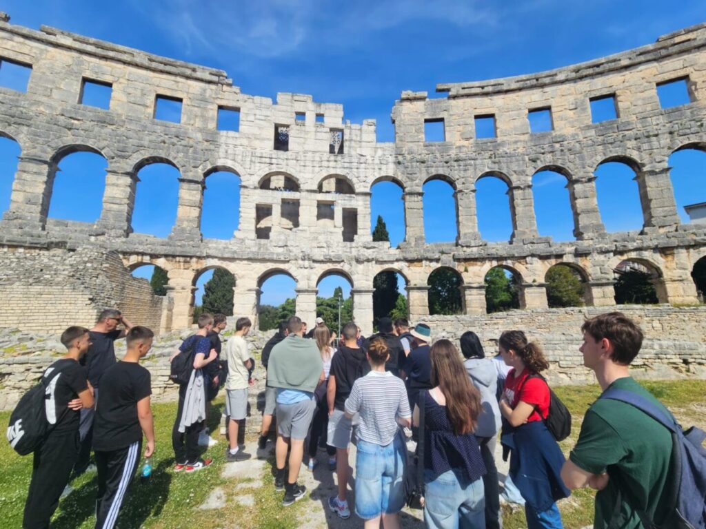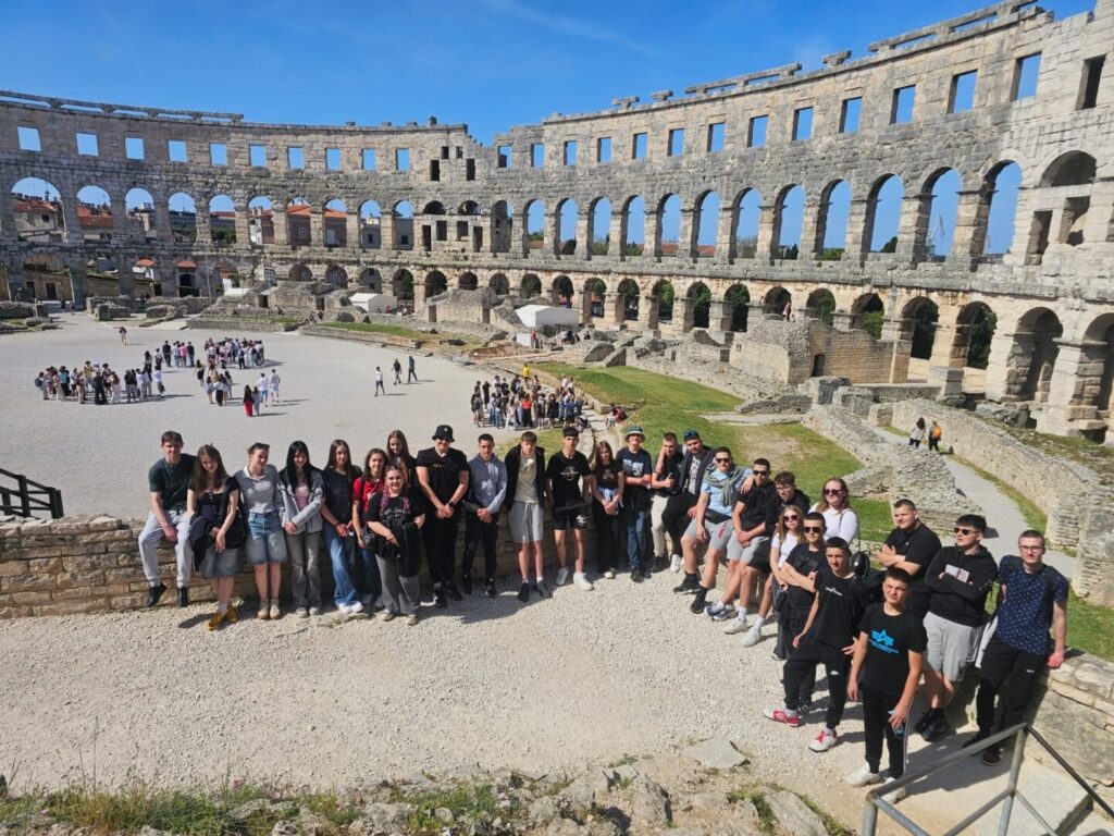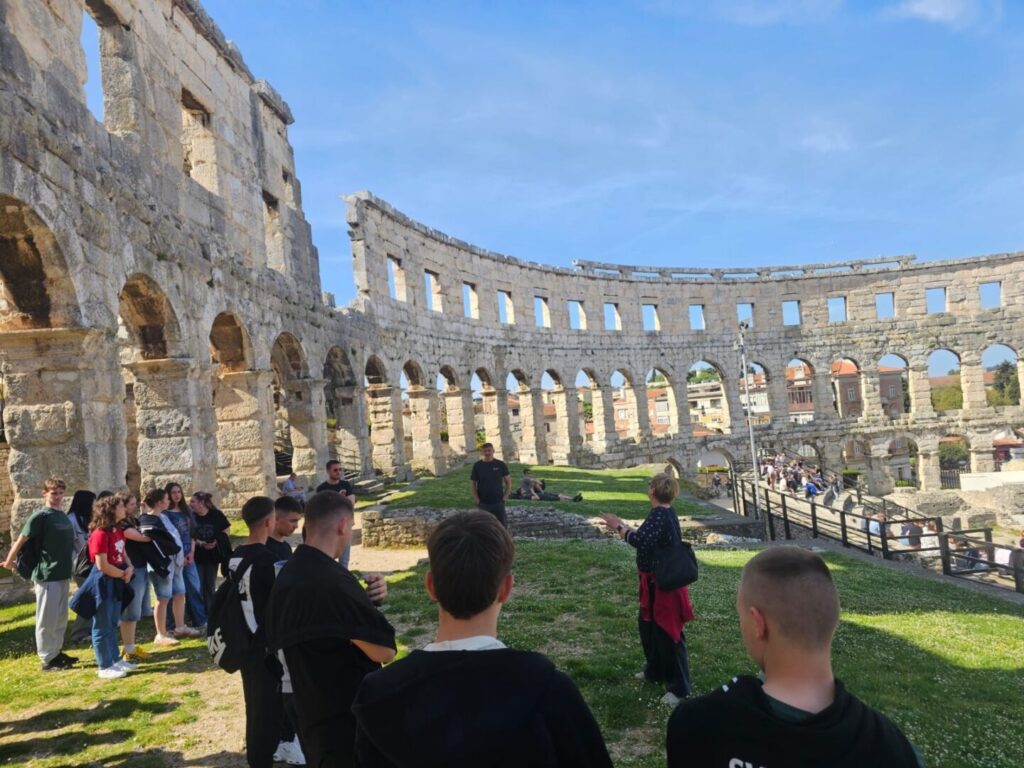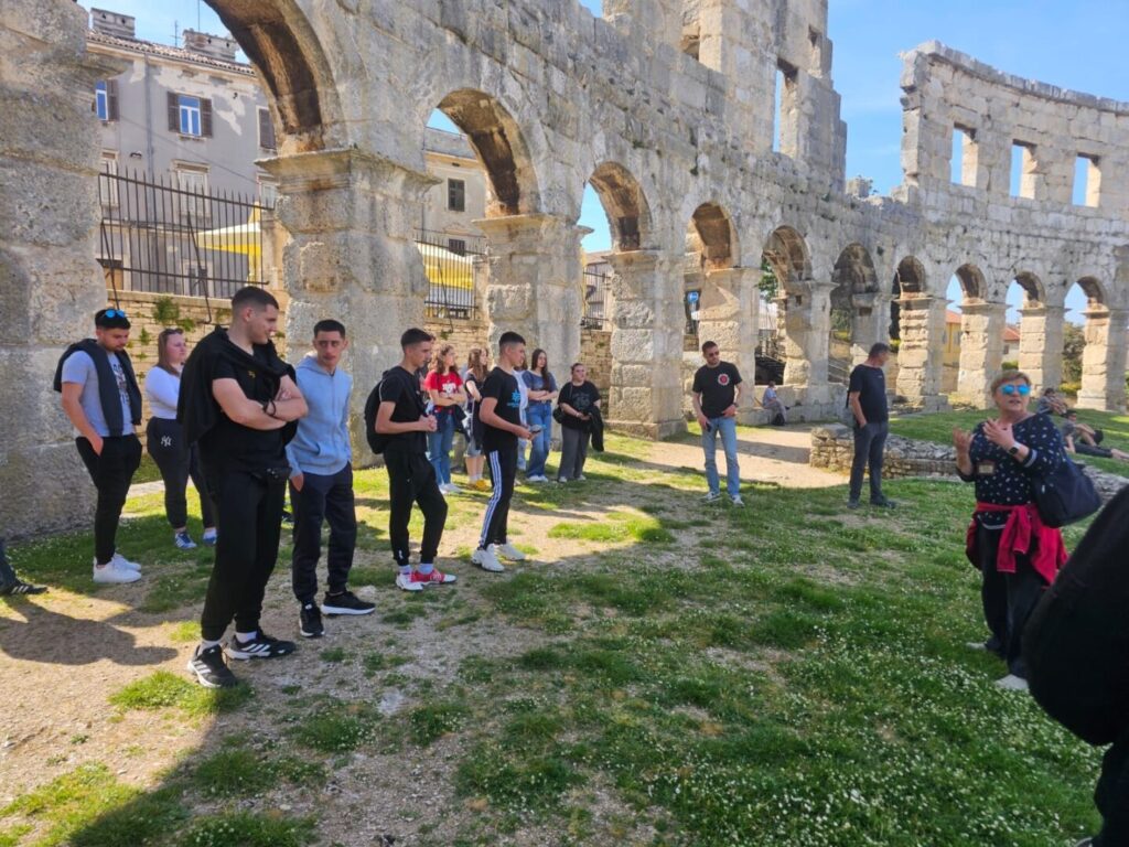 Drugog dana terenska nastava nastavila se posjetom Pula, gdje su učenici razgledali znamenitu Pulsku arenu, jedan od najbolje očuvanih rimskih amfiteatara na svijetu. Arena je izgrađena u 1. stoljeću za vrijeme Rimskog Carstva i služila je za gladijatorske borbe, a danas predstavlja važan kulturno-povijesni spomenik i simbol grada Pule.